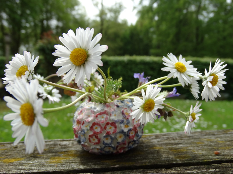 Dit patroon biedt veel mogelijkheden om te spelen met de vormen. De bloemenstekertjes zijn er in verschillend formaat. Soms past een smal glaasje ook.