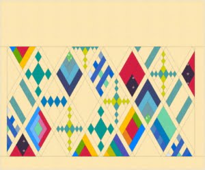 Zoekend in mij lesmateriaal over Moderne Quilts kwam ik een mooi uitgangspunt tegen en daar probeer ik dan een eigen draai aan te geven .