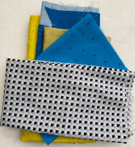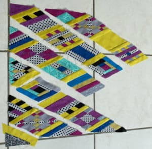 Dit keer gingen we uit van een stof dat bij iedereen in de quilt moest worden gebruikt. Ook de hoogte van de nieuwe quilts hebben we afgesproken. Alle quilts worden 1 meter hoog, de breedte van de quilt laten we vrij.