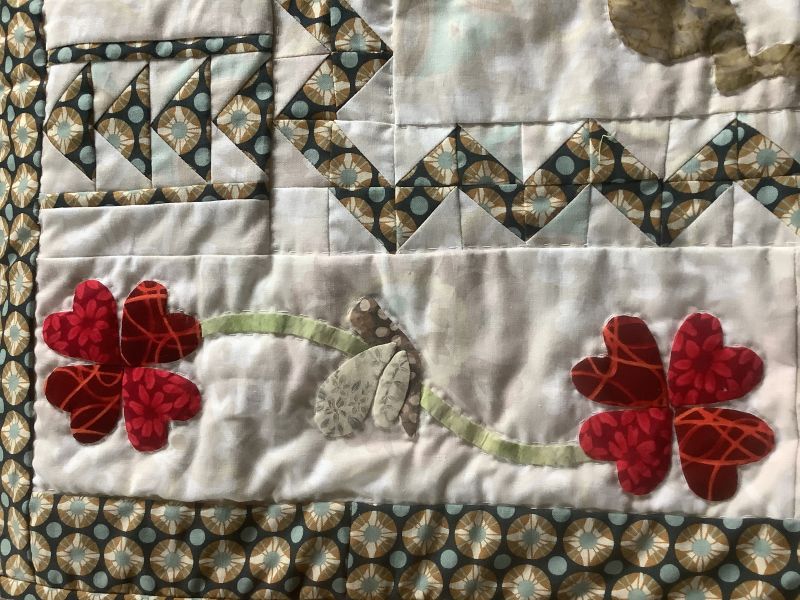 Naar aanleiding van ons verzoek aan de makers van de ingezonden foto’s voor het prikbord in Quiltnieuws 165 kregen we van Sophia Vreeswijk een uitgebreidere beschrijving van haar Mysterie Quilt met diverse detailfoto’s.