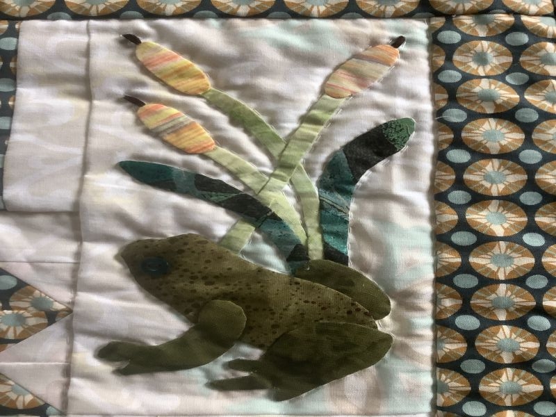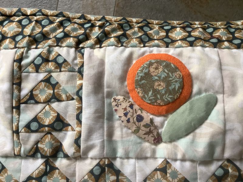 De quilt heeft nog geen bestemming; ik maakte hem vooral om de techniek onder de knie te krijgen. En ik kon het niet laten: ik heb er zelfs een bijpassend kussentje bij gemaakt.