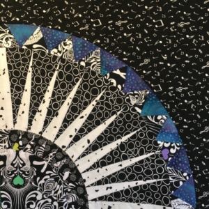 Zij introduceerde de techniek van foundation paper piecing oor dit blok. Met die techniek ben ik ook met het blok aan het werk, en daardoor wordt het relatief eenvoudig om de puntjes netjes te houden. Uiteindelijk heb ik gekozen voor ‘New York Beauty Sampler’ van Cinzia White (zie foto 2), omdat ik het centrum stuk zo mooi vind. Maar mijn quilt heeft een brede rand waarin soms een halve cirkel doorheen steekt met twee blokken, dat zijn dan extra blokken bovenop het patroon.