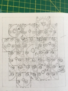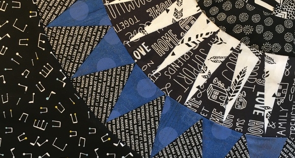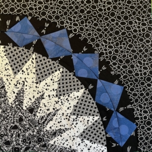 Met blokken uit de ‘Cinco de Mayo’ ontwierp ik een ‘wandelquilt’ waarbij de kwartcirkels een route vormen en ertussen ruimte is voor landschappen die we zijn tegen gekomen op onze wandelvakanties. Maar of ik die quilt nog ooit ga maken, weet ik niet. Inmiddels ben ik met andere soorten quilts bezig en heb ik ook mijn eigen improv New York Beauty blokken gemaakt voor de startblokken van mijn eerste Round Robin in 2021.
