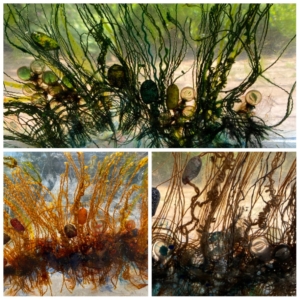 Dit project is voor mij een flinke uitdaging. Textiel en buiten, dat is iets waar ik geen ervaring mee heb en natuurlijk ben ik weer met beide benen in mijn valkuil getrapt. Het idee is niet het probleem , het maken gaat ook nog wel, maar de presentatie is van een heel andere orde en dan is er doordat ik te laat begin ook nog de tijdsdruk.