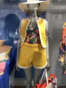 Nadat we maandag de quilts afgeleverd hadden konden we van het mooie Nantes genieten. Prachtig weer en een leuke studentenstad. Zeker de moeite waard om een en ander te bekijken. En natuurlijk vallen etalages met quilterige dingen ons op…. Leuk strandpakje toch?