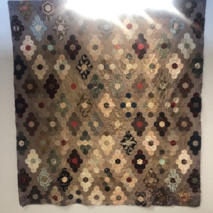 Made in the Netherlands was de expositie waar onze antieke lappendeken mocht hangen. Ook de antieke hexagonnen top van Hanneke en haar versie van het meisje met de parel maakten daar deel van uit. De verlichting was helaas niet optimaal om mooie foto’s te maken zoals jullie op onderstaande foto’s zien.