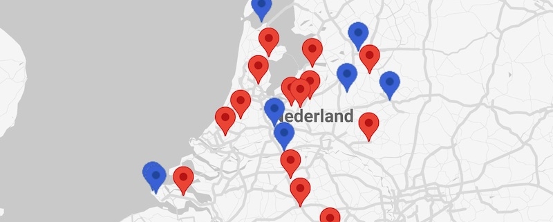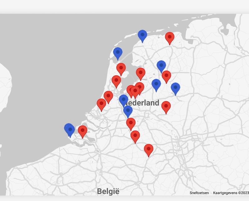 Maar voor ik daarmee begin, wil ik je eerst voorstellen aan ons nieuwe kaartje. Een lid van het Quiltersgilde bracht ons tijdens de Algemene Leden Vergadering op het idee om dit kaartje te laten maken. Op het kaartje is de locatie zichtbaar van alle interne (door het Quiltersgilde georganiseerde; rode) en externe (blauwe) activiteiten die bij ons bekend zijn. Indien een activiteit is afgelopen, dan verdwijnt deze ook van het kaartje.