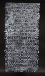 Ik heb op m’n laptop bij m’n afbeeldingen een map ‘Ideeën’ met allerlei foto’s van internet en tentoonstellingen. Met de kleuren in m’n achterhoofd ben ik daarin gaan rondkijken met de vraag of ik de gekleurde repen op één of andere manier aan het wedstrijdthema kon koppelen. Dat viel nog niet mee dus ik moest iets anders bedenken. Al scrollend door m’n foto’s zag ik in m’n portfolio twee eerdere werkstukken die ik met veel plezier had gemaakt maar waar niet zo heel veel kleur in zat, meest grijzen..