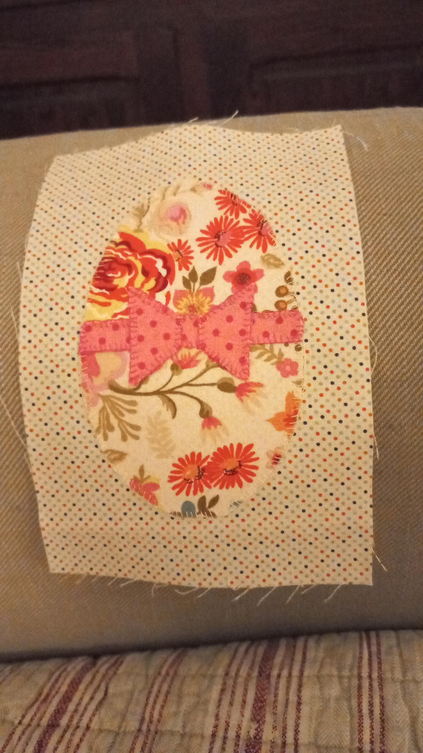 ‘Blij ei’ was een werknaam. Gerda de Jong, die de quilt heeft ontworpen, vond het wel een grappige naam want ze werd echt een blij ei van het bedenken van deze quilt! En uiteindelijk besloten we de naam zo te laten omdat het prima paste bij haar gevoel.