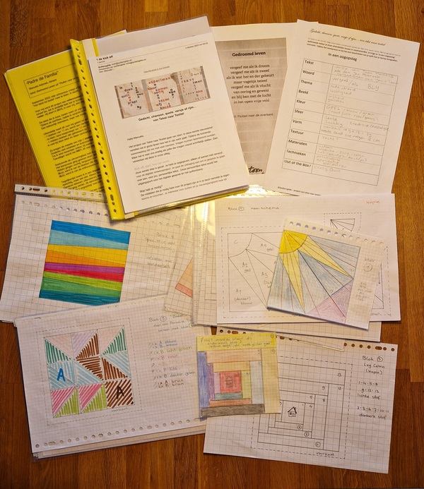 Ik heb tijdens deze meeting wat aantekeningen gemaakt: over het verwerken van tekst in je quilt of alleen letters, over copyright van je gekozen tekst. Verder nog iets over uitleg m.b.t. de mails die zouden volgen voor jezelf en je quiltmaatje.