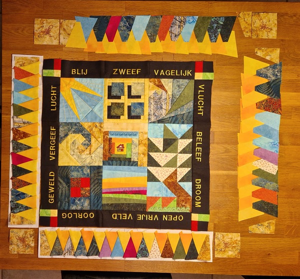 Een week later kwam de eerste mail met een goede uitleg erbij hoe je samen met je quiltmaatje in hetzelfde Word-document kan werken. Mijn maatje Ria was nog even een paar weken druk met andere dingen. Toch bleef ik elke week mijn vragen maken en opsturen. Hoe verder ik erin kwam, hoe meer ik in de flow kwam dit project tot een goed einde te brengen.