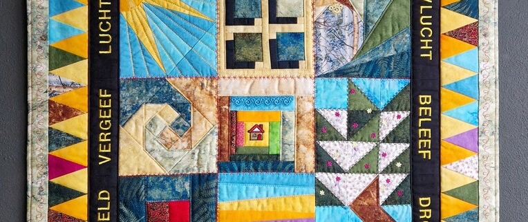 In september 2023 vraagt mijn ‘nieuwe’ schoonzus Ria mij of ik zin heb om samen aan het project Van tekst naar textiel van het Quiltersgilde mee te doen.