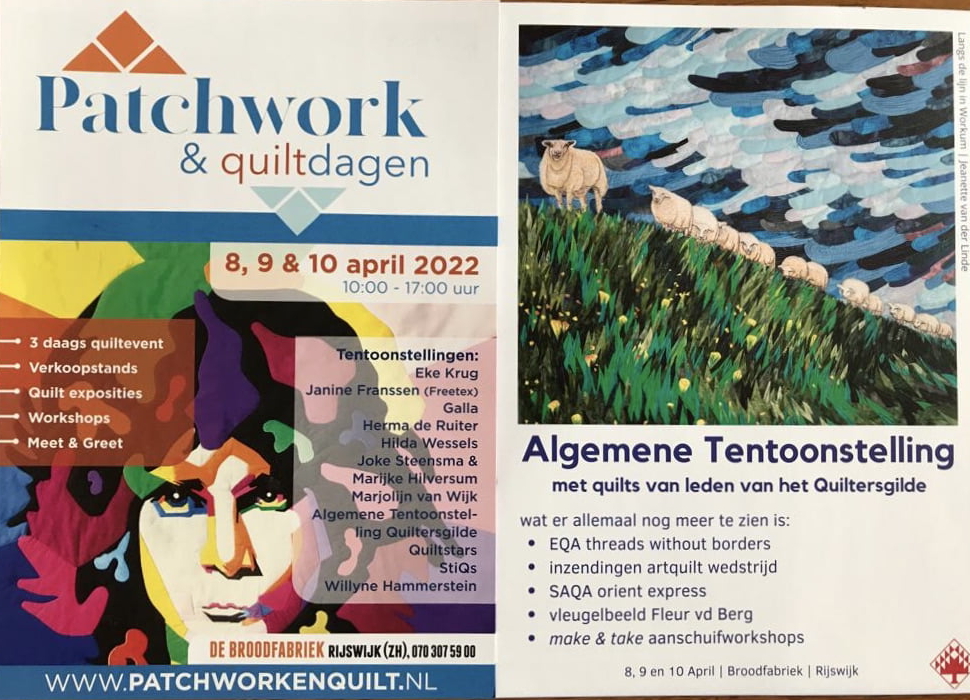 De quilts die zijn geëxposeerd op de Patchwork en quiltdagen in Rijswijk afgelopen april zijn nu allemaal te zien in filmpjes die op YouTube zijn geplaatst. Je kunt ze vinden via ons YouTube kanaal: https://www.youtube.com/c/quiltersgildenederland