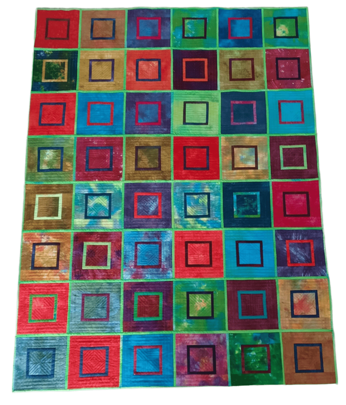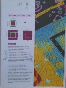 Met mijn zus wilden we een quilt maken van onze geverfde lapjes, die lagen er maar zonder bestemming. Na veel zoeken hebben we uiteindelijk dit patroon uit de simply modern nr 13 gevonden.