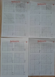 Hoe doe je dat met zo”n grote quilt. Heb ze allemaal maar op bed gelegd en gepuzzeld tot ik tevreden was. Daarna alles ook als quilt as-you-go aan elkaar gezet.
