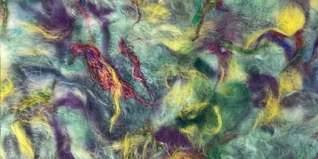 Het uitleggen is een heerlijk proces. Iedere keer een stukje “plukken” van de wol en op ondergrond laten dwarrelen. Speels, alles door elkaar en niet te strak.