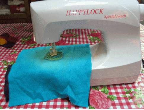 Punchen kan op 2 manieren, de manier die hier beschreven wordt, is met de punchmachine. Een naaimachine zonder draad.