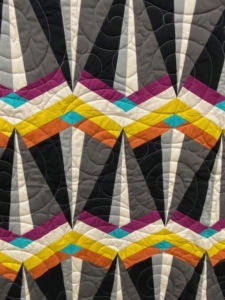 Wat een mooie quilts heb ik gezien. En wat een verscheidenheid. Van elke quilt, die ik mooi vond heb ik 3 foto’s gemaakt. Een van de quilt, een van een detail en een van de beschrijving, die ernaast hing. Als je dit altijd in dezelfde volgorde doet, kun je van elke quilt altijd de maker terug vinden. Een tip uit het Quiltcon magazine, dat ik woensdag avond al had gekocht.