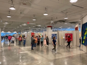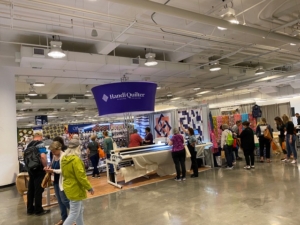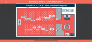 Quiltcon wordt jaarlijks georganiseerd door het Modern Quilt Guild en het is de grootste tentoonstelling van moderne quilts in de wereld. Dit jaar was het de 10e keer. Ik heb genoten van het allereerste tot het allerlaatste moment. De tentoonstelling werd gehouden in het congrescentrum AmericasMart in Atlanta en was verdeeld over 3 verdiepingen. Op de bovenste verdieping was het grootste deel van de tentoonstelling met alle categorieën modern quilten. Een absoluut walhalla waar ik de meeste tijd heb doorgebracht. Natuurlijk heb ik ook gewinkeld! Er waren 2 verdiepingen met winkels en quilt gerelateerde bedrijven.