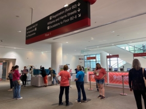 Vrijwilligers in zalm kleurige t-shirts waren overal aanwezig om vragen te beantwoorden, te helpen, de weg te wijzen of wat dan ook.
