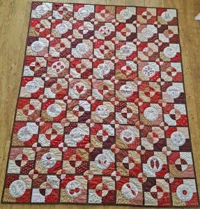 En de Piece & Love quilt is inmiddels bijna ook een AFFO, nog een metertje of 2 binding vastzetten en dan hoeft die alleen nog een label.