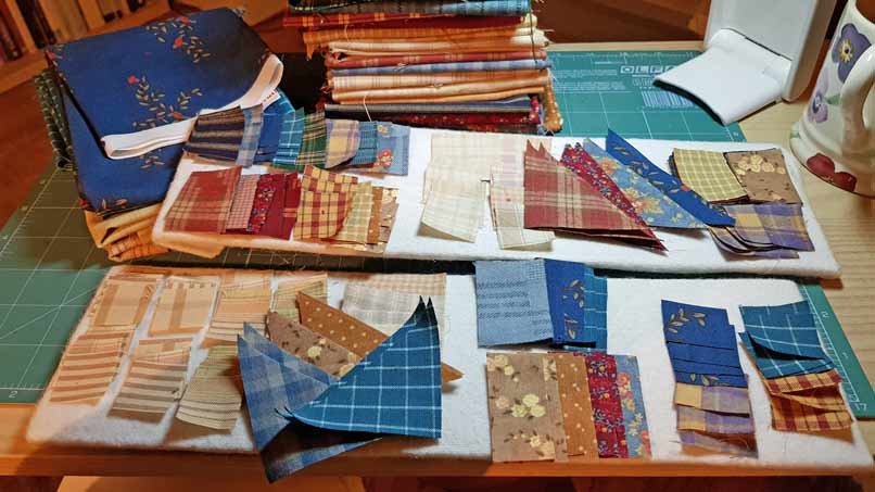 In 2011 ben ik ooit begonnen met quilten als tegenhanger voor mijn werk. Ik werkte toen bij een internationale organisatie waar het werk zich letterlijk 24×7 aanbood. Quilten was voor mij toen een mooie reden om met iets anders bezig te zijn dan werk. En zo is het in deze tijden ook weer. Het quilten biedt genoeg uitdaging om mijn hersencellen bezig te houden, maar niet de druk of onbewuste spanning die op de achtergrond opbouwt. Ik zie in de internationale quilt community allerlei mooie initiatieven opstarten met quilt-alongs – het samen aan een project werken. Daarbij veel ontwerpers die hun tijd en patroon gratis aanbieden bijv. Bonnie Hunter van Quiltville of de Facebookgroep van een aantal Australische ontwerpers. Of wat dacht je van de oproep van het Quiltersgilde om kaarten met een textielgroet te maken zodat die naar leden van het eerste uur gezonden kunnen worden? We hoeven ons niet te vervelen.