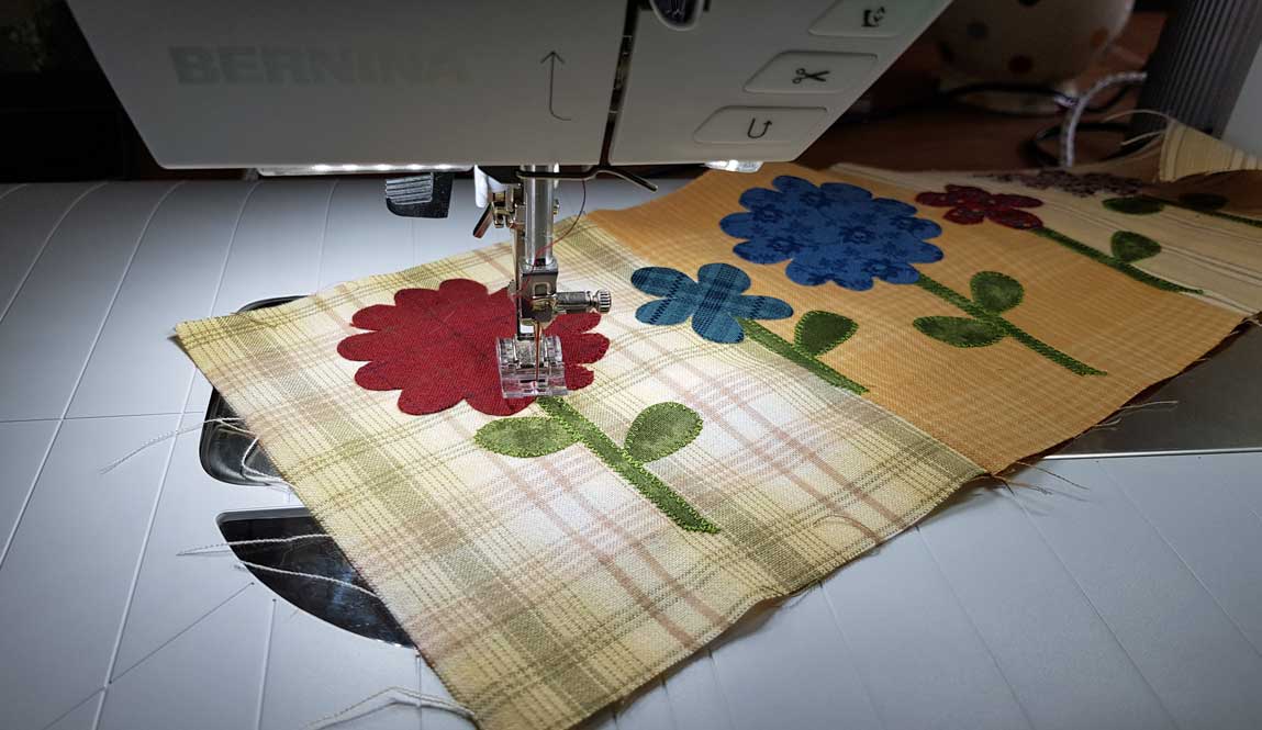 En omdat ik dan zo ver ben met deze 2 projecten heb ik toch een nieuwe doos geopend. Wel uit de stapel UFO’s, dus een lopend project. Maar er was nog maar zo weinig aan gedaan dat het eigenlijk toch een nieuw projectje is. Het is een patroon voor een mini quiltje van Bobbin, Bonte Bloemen. Heb het ooit gekocht in 2013, geloof ik. Ik had wel al allemaal lapjes bij elkaar verzameld maar nog geen steek gezet. Vond het wel passen bij de tijd van het jaar en precies het soort lapjes waar ik nu zin in heb. Het appliqueren doe ik voor dit quiltje op de naaimachine en daarmee hou ik het tempo er lekker in.