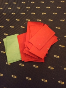 Dus in de dagen voorafgaand aan ons vertrek 30 huisjes helemaal getekend en gesneden en mooi in zakjes verpakt: nog net binnen de 300 gram, pff.
