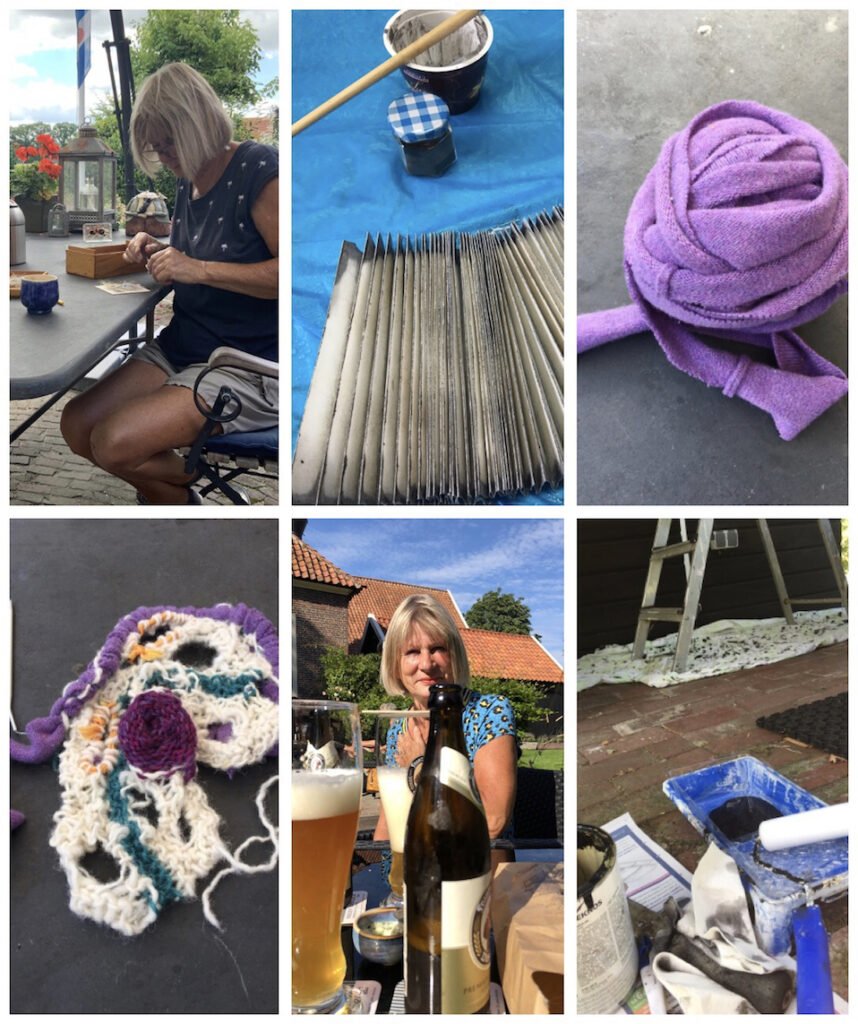 Na een hele periode van thuis zitten heb ik mijzelf deze zomer getrakteerd op een paar leuke workshops. Naast het roesten ben ik twee keer naar het Handwerkcafe Zwolle geweest. Hier leerde ik van Mathilde Jongbloed in het kader van recycling draden maken uit oud textiel en dit toe te passen in weven en free form knitting. Eind deze maand ga ik nog naar een dagje natuurlijk verven bij Joke Blokland, via Facebook vind je meer informatie over Joke.