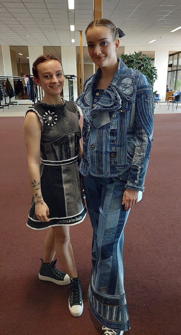 2e plaats: Linda van Lexmond, met een set kleding voor haar dochters gemaakt van oude spijkerbroeken.