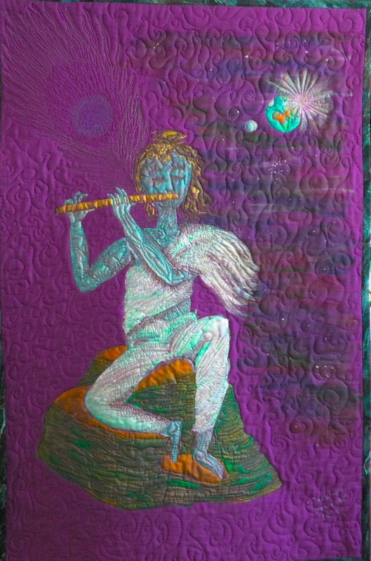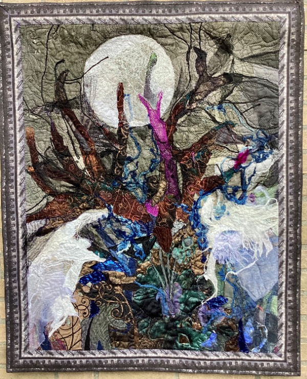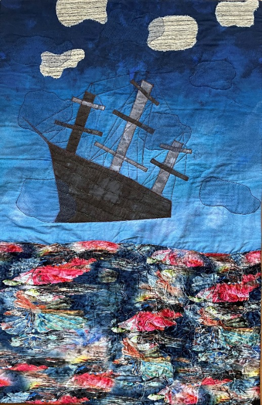 Ook in Italië is de EQA actief op de beurs genaamd Abilmente in Vicenza. Dit is een ander soort beurs dan in Val d’ Argent. Niet specifiek gericht op patchwork en quilten maar op vele soorten handwerk (klik hier voor info). Toch is de EQA een gewilde partner om daar elk jaar in februari werk te tonen van de leden van de Europese Quiltersgilden. Afgelopen februari was het thema ‘Legenden’ (Legends) en 6 Nederlandse leden van het Quiltersgilde stuurden een werk in. De afmetingen waren voorgeschreven (80 x 120 cm) zodat alle quilts mooi geëxposeerd konden worden. De inzendingen voor deze tentoonstelling werden gejureerd. Ondanks de mooie inzendingen van de Nederlandse deelnemers gingen de prijzen aan hun neus voorbij. Na Abilmente zijn de quilts op reis gegaan door Europa met als 1e stop Finland (april 2025), dan Polen (mei 2025), Letland (augustus 2025), België (oktober 2025) en Spanje (april en mei 2026). Zodra een datum voor Nederland bekend is laten we dat weten. Onderstaand van links naar rechts de inzendingen van: Célestine Jeunhomme, Gerda Peerdeman, Hilde Bos, Lia Meiborg, Marlotte Pennings en Nelleke Meinders.