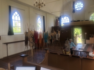 Als ik Nienke tegenkom gaat het al heel gauw over het Textiel Platform, Textiel Festival en STIDOC. Ik moet eerlijk bekennen dat ik niet heel goed naar haar tentoongestelde quilts heb gekeken, want een enthousiast gesprek duurde wat lang. En daar kwam mijn wederhelft vragen hoeveel kerken ik voor vandaag nog op de planning had staan……