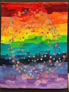 Ik dacht altijd dat Quiltfestival Noord-Groningen erg ‘arterig’ is. Maar het is juist heel afwisselend! Mijn smaak en interesse is in de tussenliggende jaren (ik ben er 6 jaar geleden geweest) waarschijnlijk ook veranderd. Veel dingen die ik vroeger echt TE veel art vond, kan ik nu beter waarderen. De quiltwereld is constant in beweging en dat is spannend.
