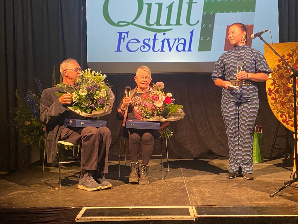 Het afgelopen weekend hebben tientallen quilters genoten van het prachtige weer in combinatie met prachtige textiele werkstukken. Elke twee jaar is het weer een feestje. Deze keer was het extra feest. Rob en Marjan Ruitenberg kregen uit handen van de burgemeester een koninklijke onderscheiding opgespeld!