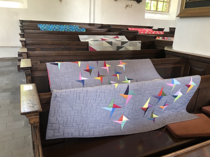 Als ik Nienke tegenkom gaat het al heel gauw over het Textiel Platform, Textiel Festival en STIDOC. Ik moet eerlijk bekennen dat ik niet heel goed naar haar tentoongestelde quilts heb gekeken, want een enthousiast gesprek duurde wat lang. En daar kwam mijn wederhelft vragen hoeveel kerken ik voor vandaag nog op de planning had staan……