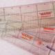 Na het snijden van de driehoeken heb ik de achtergrondstof uitgezocht., waarvoor ik een neutrale Grungestof wilde gebruiken. Uiteindelijk is het een zachtgrijze Grunge geworden.