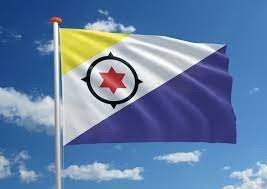 De vlag van Bonaire in de kleuren geel, wit en blauw symboliseert de groei en ontwikkeling van het eiland; de zon, de bloemen, de zee en haar zes nederzettingen. Het kompas heeft daarbij een centrale plek.