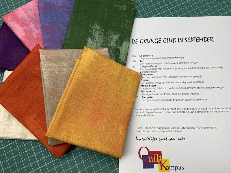 Heel veel quilters zijn maandelijks verrast met een mooi pakketje met 8 kleuren Grunge stoffen. In een formaat naar keuze.