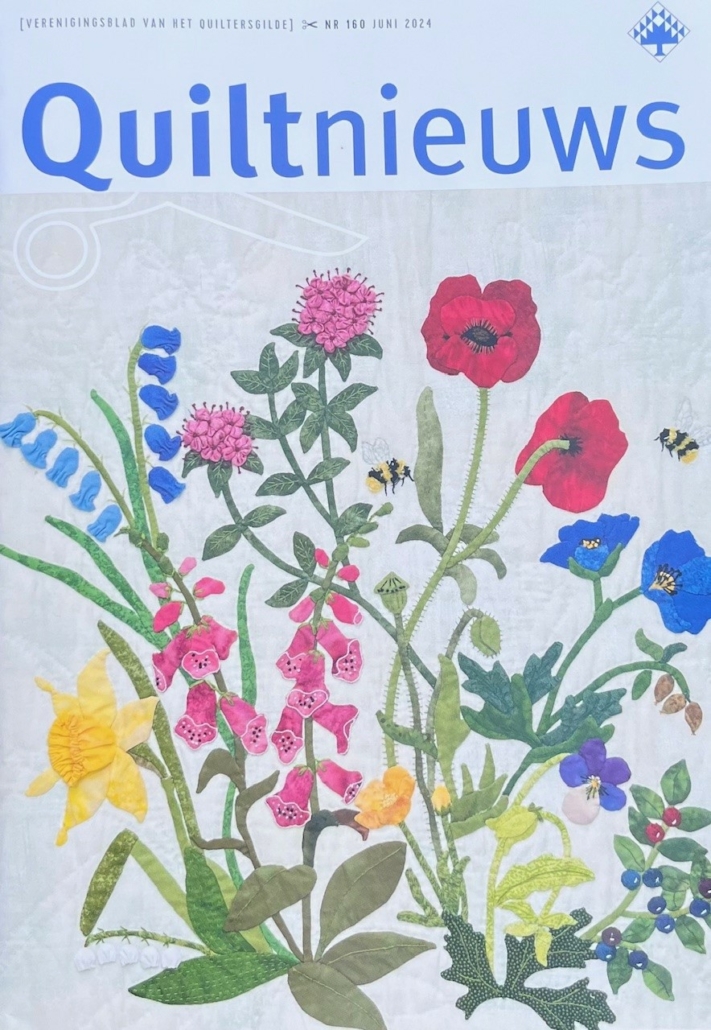 Om te beginnen een prachtige quilt van Loura van de Belt. Misschien heb je die ook al gezien vorig jaar in Nijkerk. De hele redactie vond deze quilt prachtig en kan wat ons betreft de zomer in luiden.