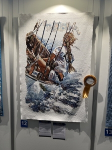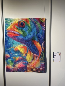 Ook konden we stemmen voor de mooiste Quilt van de wedstrijd met het thema ”Ocean”. ( omdat ik mijn mailadres had ingevuld kreeg ik donderdag 19 september bericht dat de quilt van Angela Minaudo met het thema “The Ocean is a woman” de publieksprijs had gewonnen).