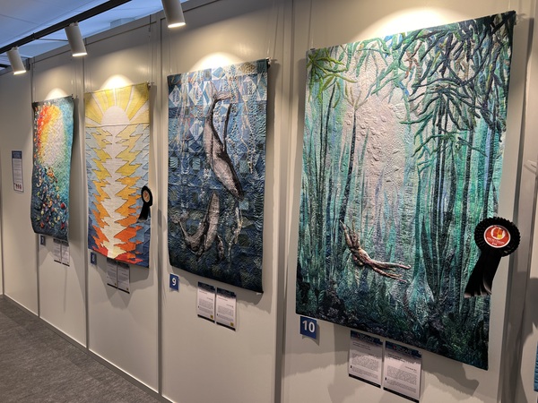 Ook konden we stemmen voor de mooiste Quilt van de wedstrijd met het thema ”Ocean”. ( omdat ik mijn mailadres had ingevuld kreeg ik donderdag 19 september bericht dat de quilt van Angela Minaudo met het thema “The Ocean is a woman” de publieksprijs had gewonnen).
