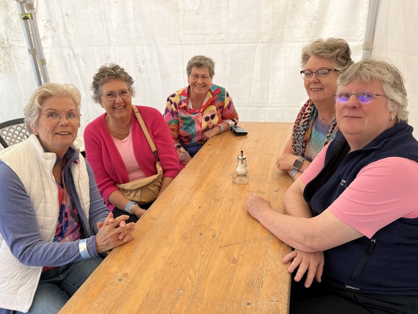 Na eerst een kopje koffie gingen wij alle plekken langs waar de quilts tentoongesteld werden. Ik viel van de ene in de andere verbazing. Dat men zulke kunstwerken kan maken. De dames gaven mij zo nu en dan uitleg over soorten van quilts en de gebruikte technieken. Uiteraard werden ook de eigen quilts bewonderd en de maaksters werden vereeuwigd op de foto.