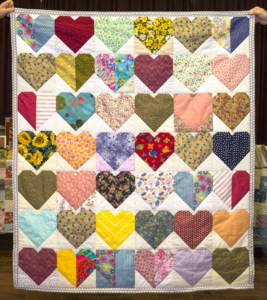 Vrijdag 1 april was het zover. Met een kofferbak vol quilts, gemaakt van blokken die onze leden én niet-leden doneerden, vertrokken wij naar Maasbracht, Limburg. Een van de eerste regiodagen sinds lange tijd die door kon gaan dankzij de versoepeling van de coronamaatregelen. Van een heleboel blokken waren quilts gemaakt om te schenken aan de slachtoffers van de overstromingen vorig jaar juli. Geen eerste levensbehoefte maar wel een teken van medeleven; een hart onder de riem.