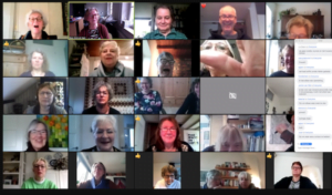 Elk jaar in februari komen de regiovertegenwoordigers bij elkaar voor de regiovergaderdag om ervaringen uit te wisselen en elkaar te inspireren. Op 8 februari 2020 was dat nog het geval, maar dit jaar konden we natuurlijk niet met z’n allen gezellig naar de Schakel in Nijkerk komen. Gelukkig biedt ZOOM in tijden van corona de oplossing. Met z’n dertigen vulden we het scherm van de computers en i-pads, zelfs zo dat je niet iedereen in 1 keer kon zien. Soms liet de techniek ons een beetje in de steek, een van de deelnemers kon de camera niet werkend krijgen, maar we konden haar wel horen gelukkig. En een aantal was gewoon gezellig bij elkaar op bezoek (1 bezoeker mag) en zaten met z’n tweeën op gepaste afstand voor het scherm!