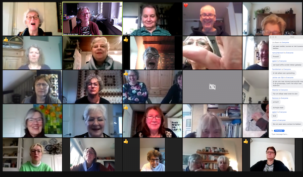 Elk jaar in februari komen de regiovertegenwoordigers bij elkaar voor de regiovergaderdag om ervaringen uit te wisselen en elkaar te inspireren. Op 8 februari 2020 was dat nog het geval, maar dit jaar konden we natuurlijk niet met z’n allen gezellig naar de Schakel in Nijkerk komen. Gelukkig biedt ZOOM in tijden van corona de oplossing. Met z’n dertigen vulden we het scherm van de computers en i-pads, zelfs zo dat je niet iedereen in 1 keer kon zien. Soms liet de techniek ons een beetje in de steek, een van de deelnemers kon de camera niet werkend krijgen, maar we konden haar wel horen gelukkig. En een aantal was gewoon gezellig bij elkaar op bezoek (1 bezoeker mag) en zaten met z’n tweeën op gepaste afstand voor het scherm!
