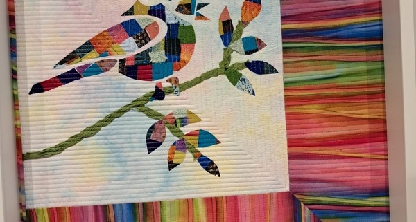 We kunnen kiezen uit een afbeelding van een roos of van een vogel. Vervolgens teken je de onderdelen op Steam-a-Seam en dan plak je kleine stukjes stof op de Steam-a-seam. Alle onderdelen uitknippen en op een mooie ondergrondstof plakken. Door alle verschillende pakketjes is het verrassend hoe alle rozen en vogels anders zijn.