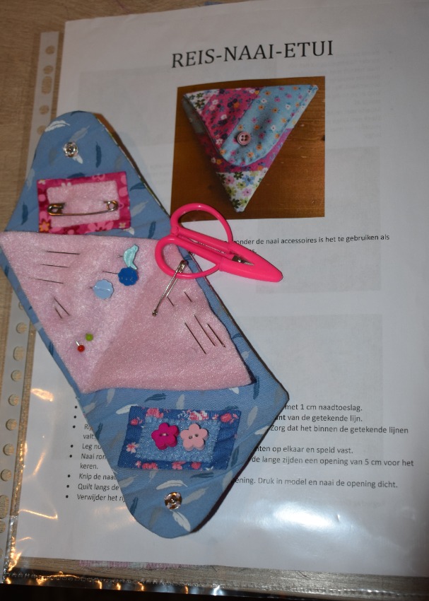 Na de lunch is er altijd een kleine workshop die is voorbereid door de regiovertegenwoordigers van één regio, deze keer was dat Noord-Holland Noord. Janine van Dijk en Yolanda Coevert hadden voor een duidelijke beschrijving en een stofpakketje gezorgd zodat we aan de slag konden met het maken van een Japans tasje. Yolanda loodste ons door het vouwwerk heen. Het was na afloop van de bijeenkomst niet bij iedereen helemaal klaar maar daar was het enthousiasme niet minder om.