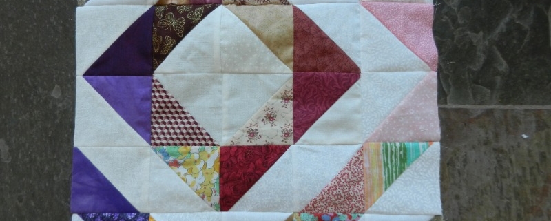 Een hele tijd geleden heb ik het gehad over het berekenen en snijden van HST’s (Half Square Triangles, halve vierkant driehoeken). Ik gebruik deze HST’s ook voor mijn restverwerking. Daarmee bedoel ik, lapjes die ik overhoud van projecten, lapjes die ik krijg maar die niet echt in de projecten passen waar ik op dat moment mee bezig ben, of lapjes waarvan ik weet dat die nooit gaan passen in projecten waar ik mee bezig ben. Je kent ze wel. Ik snijd dat soort lapjes in vierkanten van 15cm bij 15cm, 10cm bij 10cm of repen van diverse breedtes wanneer ik er geen vierkanten van 10cmx10cm meer uit kan halen. De repen gebruik ik voor stringquilts, daar heb ik het ook al ooit eerder over gehad.