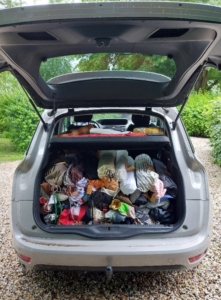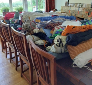 Half juni zijn via een beperkte Quiltexpresse 70 quilts ingeleverd. Ik mocht ze vanuit Nijkerk mee naar huis nemen en ze lagen hoog opgestapeld op tafel.