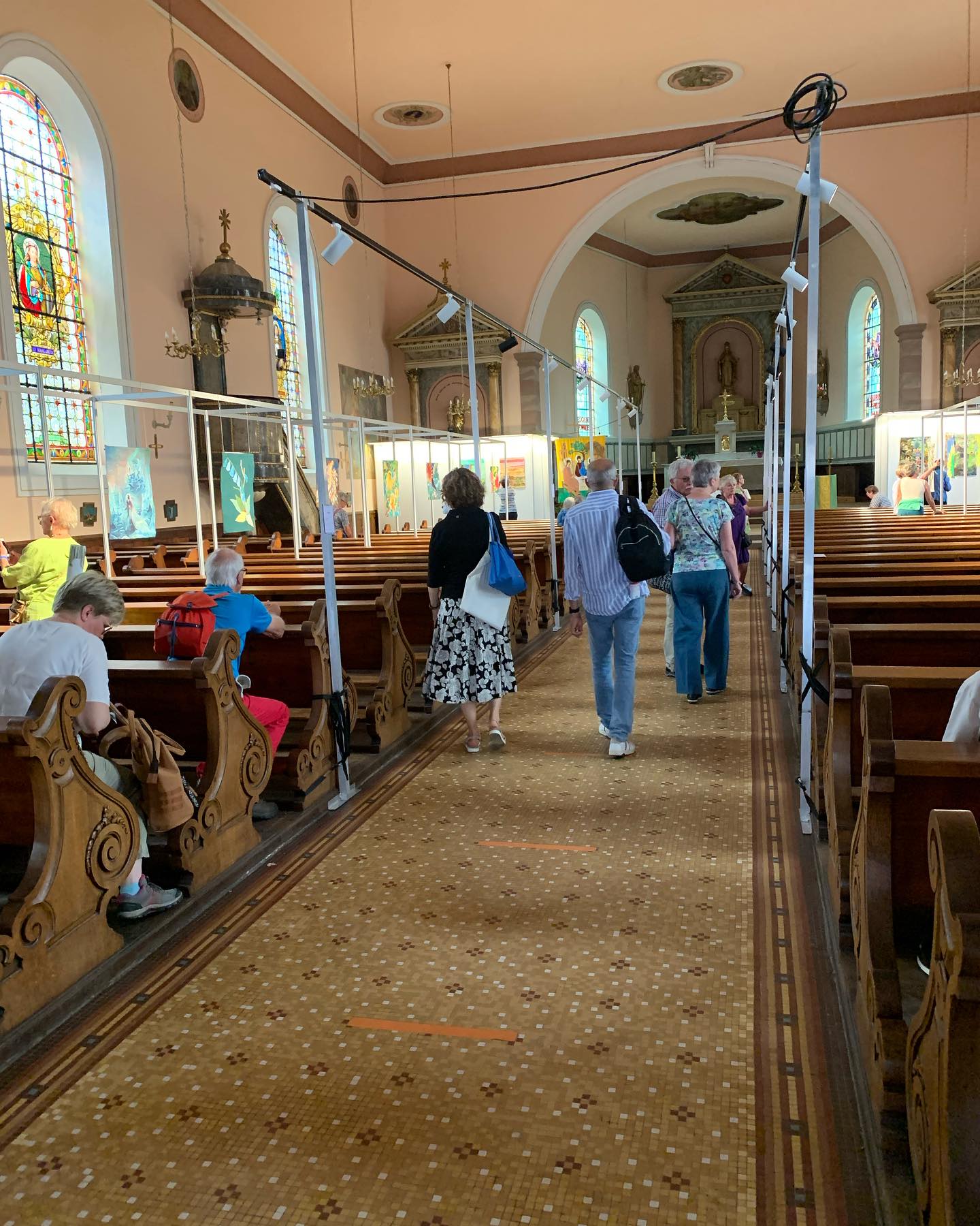 Ik had een prachtige locatie, Maison des Oeuvres in Sainte-Croix-aux-Mines, waarvan ik al een plattegrond had ontvangen en zelfs videobeelden, zodat ik thuis al een plan kon maken wat ik waar wilde hebben in de tentoonstellingsruimte.De organisatie had gezorgd voor de paspoppen en speciale verlichting.